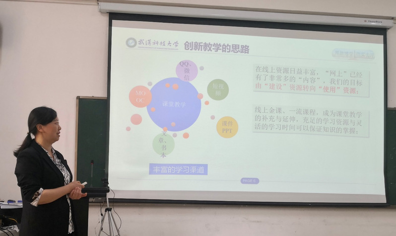 第三届高校教师教学创新大赛二等奖获得者张青老师从比赛的性质、赛事资料的准备收集和课程教学创新设计等方面给大家进行了交流。